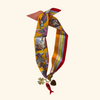 Each Scarf Charm Necklace features a hand-selected silk scarf curated by MCharms for its color, print, and elegance. The three charms are placed together on a ring-style charm clasp, which allows you to remove them or add your own charms whenever you like. Wear it around your neck, on your wrist, tied to your purse, or even wrapped around a straw hat for a chic beach-day touch. Every piece is limited and unique—no two are ever exactly alike.