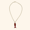 Enamel red fish with stone detail. The perfect necklace to pair with our red coral necklace 18 inches in length.